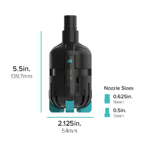 The Aqua Illumination (AI) Axis 20 Centrifugal Pump is a compact and efficient solution for aquariums up to 15 gallons. With a maximum flow rate of approximately 185 gallons per hour (700 liters per hour) and a max head of about 5 feet (1.5 meters), it ensures optimal water circulation. The pump operates quietly, consuming up to 12 watts of power. It features wireless smart device programming via the myAI or Mobius app, allowing for easy control and customization. The Axis 20 includes Schedule, Feed, and Calibrate modes to tailor performance to your aquarium's needs.Ā