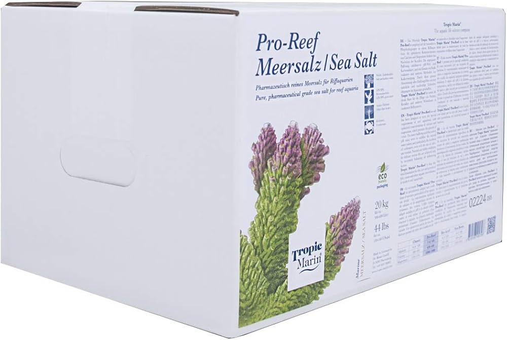 Tropic Marin Pro-Reef Salt is specifically designed to meet the requirements of modern reef aquariums, with optimized concentrations of calcium and magnesium to promote coral growth. Its buffering system stabilizes pH and alkalinity, even when using calcium reactors or mineral additives. Manufactured from pure, pharmaceutical-grade salts, it is free from nitrates, phosphates, and other unwanted chemicals. The salt contains all major and 70 trace elements in the exact proportions found in tropical seawater, ensuring a natural and stable environment for delicate marine life.